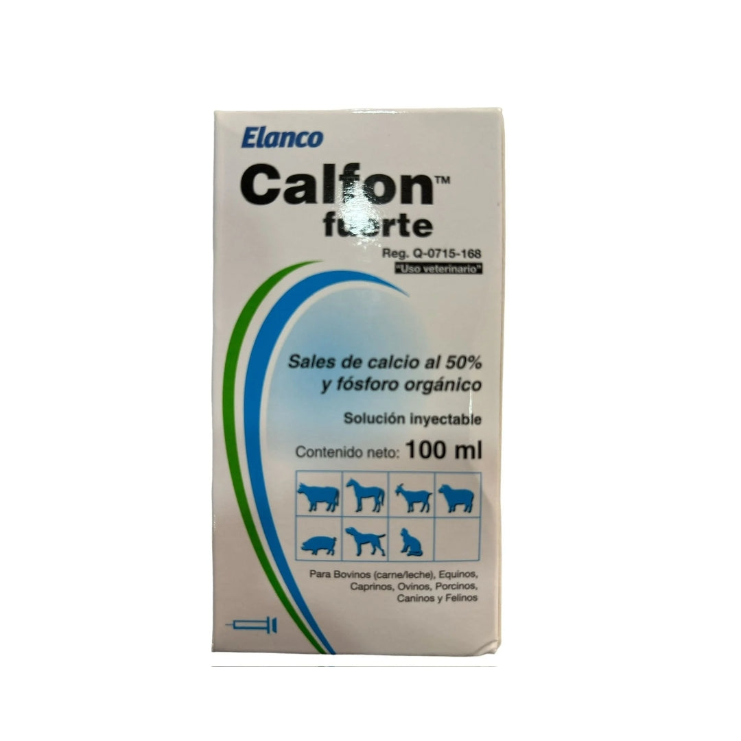Las tres sales cálcicas contenidas en Calfon fuerte, reúnen las cualidades necesarias para tratar las afecciones provocadas por falta de calcio. La adición a su fórmula de fósforo orgánico realiza una acción estimulante sobre el metabolismo y mejora el aprovechamiento del calcio. Posee una excelente tolerancia en los tejidos en el sitio de la aplicación.