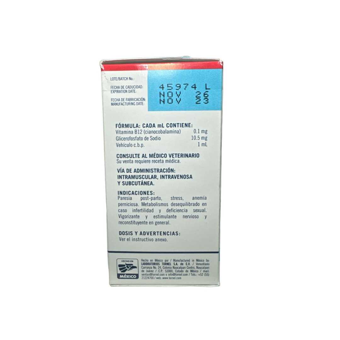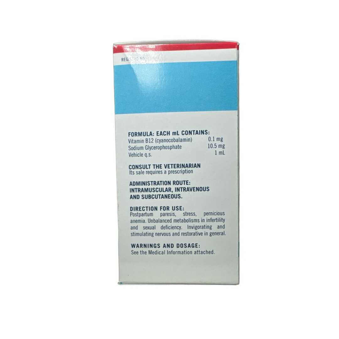Vitamina B12 (cianocobalamina): 0.1 mg, Glicerofosfato de Sodio: 10.5 mg, Vehículo c.b.p: 1 ml.
