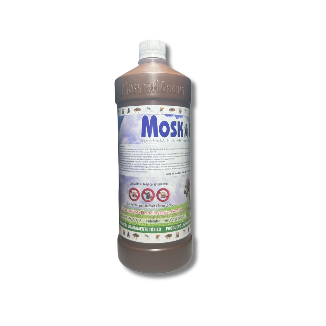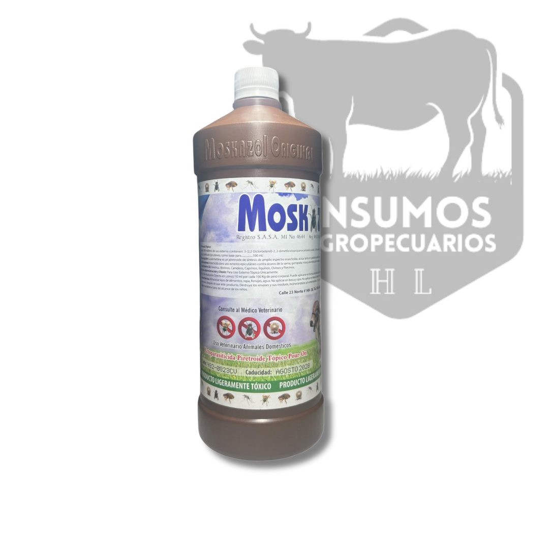 Insecticida para uso externo epicutáneo contra ácaros de la sarna; garrapata; mosca doméstica del establo, del cuerno o paleta; mosquito: piojo; pulga y tábano entre otros insectos.