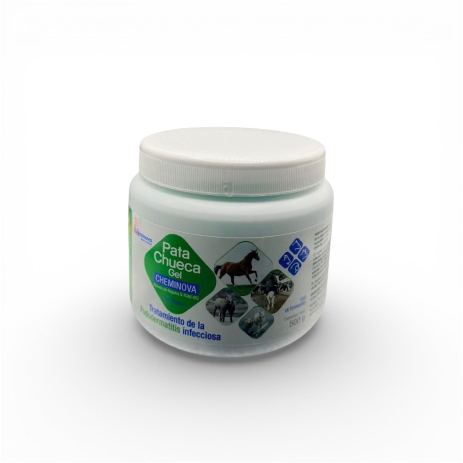 Pata Chueca Gel promueve el crecimiento de la placa cornea de la pezuña por la irritación causada por el ingrediente activo, en presencia de pododermatitis por diferentes causas. El exceso de humedad promueve el reblandecimiento y la infección de las pezuñas generando pododermatitis y otras afecciones como la verruga peluda. Pata Chueca Gel regula la humedad, deshidratando la pezuña, además de ejercer una acción antimicrobiana local y la irritación de la placa cornea promoviendo su crecimiento. En Equinos está indicado para el cuidado del casco, palma y ranilla; altamente recomendado en cascos adoloridos y suaves.