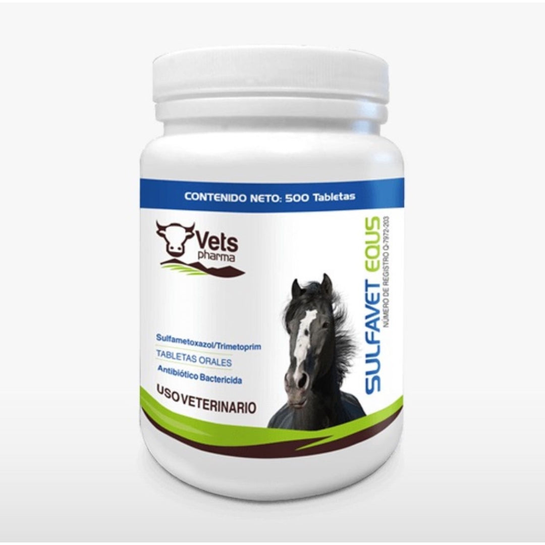 Oral, moler las pastillas y disolverlas en agua y aplicar directamente al equino, o una vez molidas mezclar con un poco de salvado para que sean ingeridas por el equino.